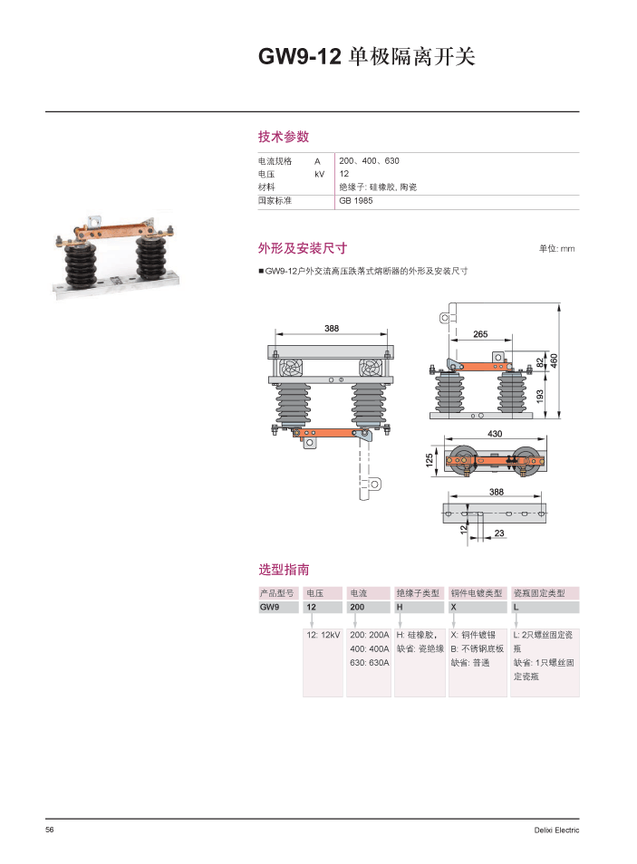 GW9-12/200A 组,GW9-12 户外单极高压隔离开关,DELIXI德力西