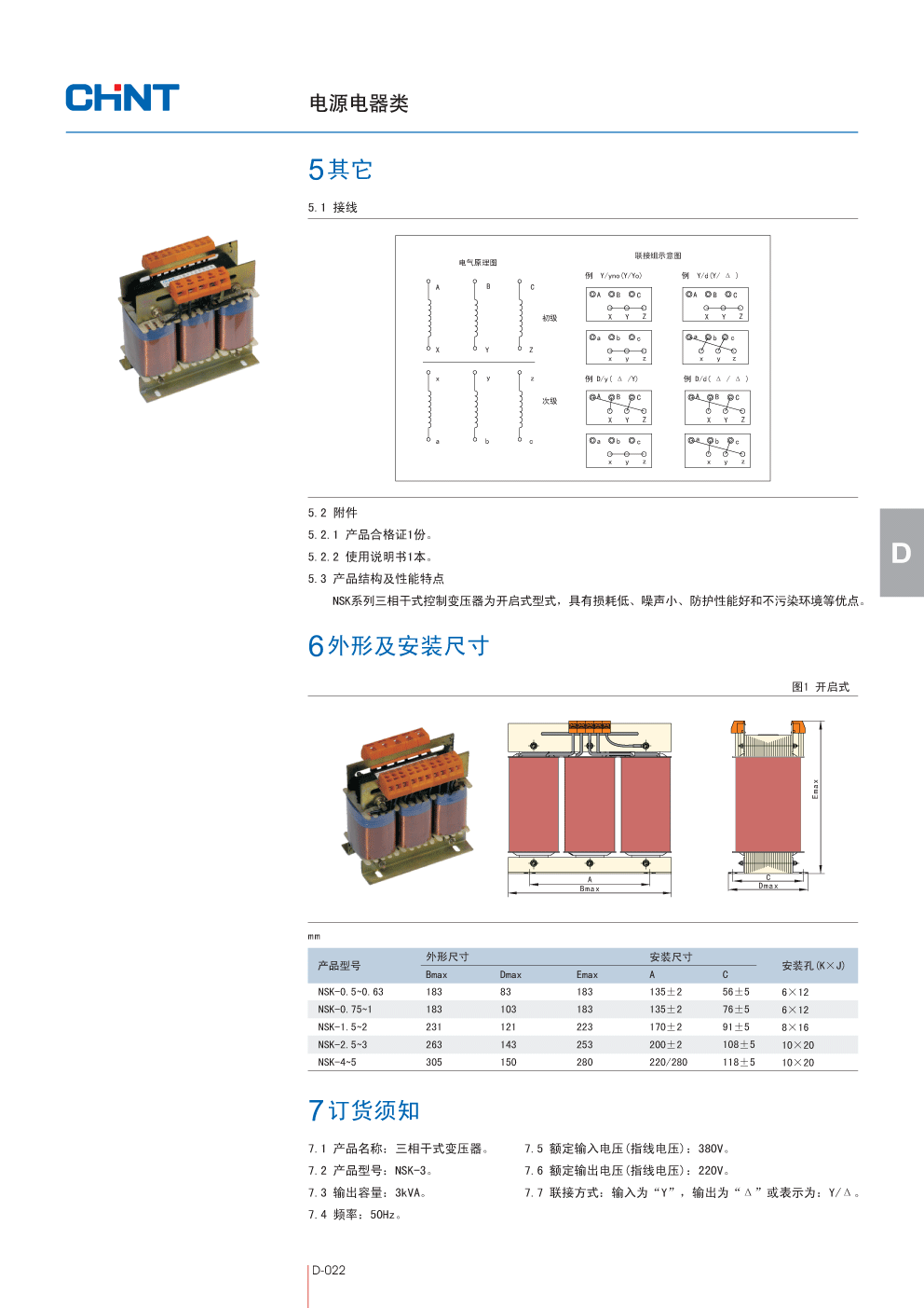 适用于交流50Hz~60Hz,额定电源电压500V及以下,额定容量5kVA及以下的电路中作控制或动力电源。产品标准: Q/ZT 525